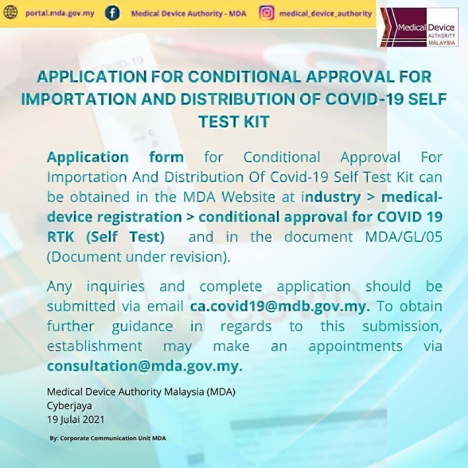 Self test covid 19 test kit conditional approval 29 Julai 2021