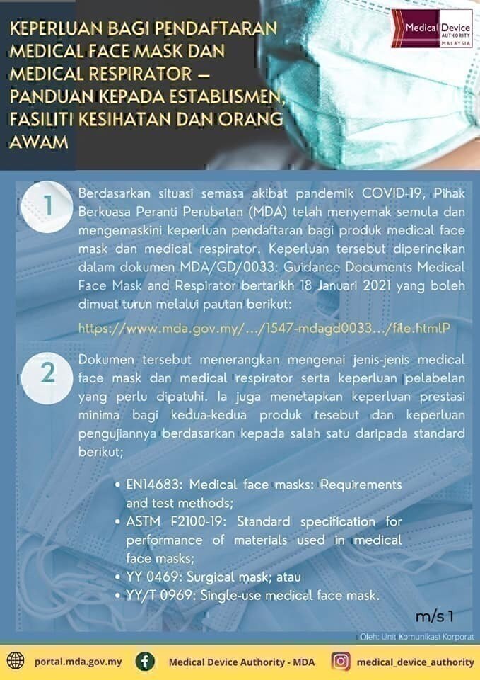 Keperluan pendaftaran medical face mask