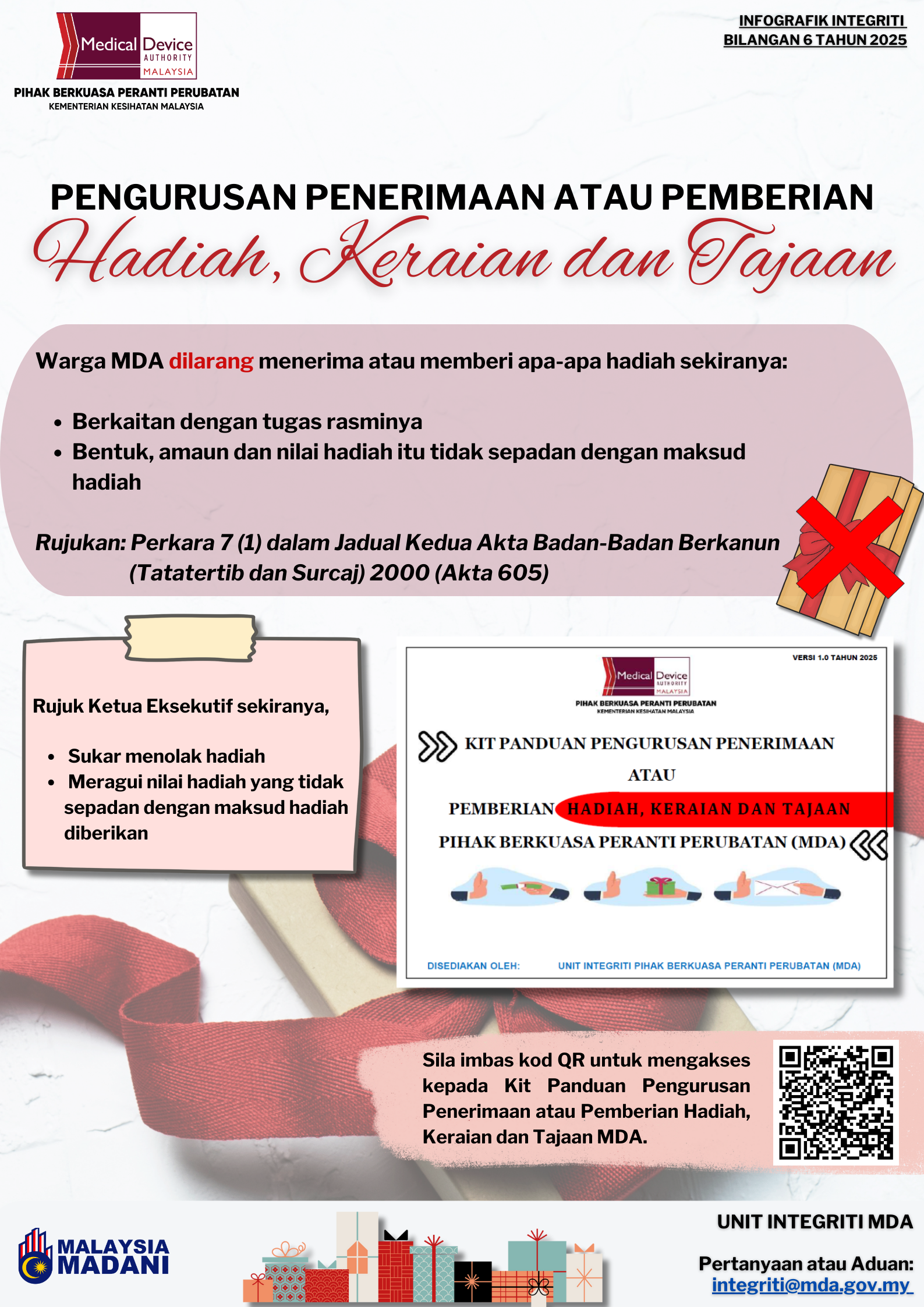 INFOGRAFIK INTEGRITI BIL. 6 TAHUN 2025 PENGURUSAN PENERIMAAN ATAU PEMBERIAN HADIAH, KERAIAN DAN TAJAAN MDA.png